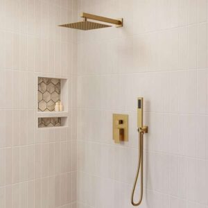 5-Spray Square 12 in. Rain Wall Mount Shower System with 6 in. Shower Head Handheld shower in Brushed Gold 2.5 GPM